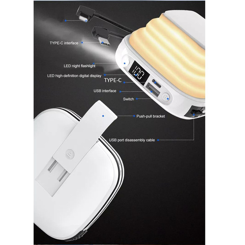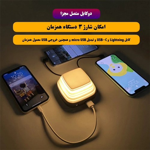 پاور بانک پرودو مدل چراغ خواب (Porodo Outdoor Night Light) با حجم 10000 میلی آمپر یک شارژ کننده ی چند منظوره است که دارای پاوربانک 10000 میلی آمپر ساعتی، چراغ شب , چراغ قوه LED یکپارچه و هولدر تلفن همراه است، بنابراین دیگر هرگز بدون برق یا نور گرفتار نخواهید شد. . دستگاه های خود را با درگاه های ورودی و خروجی Type-C شارژ نگه دارید و با داشتن نگهدارنده گوشی از همزمانی کار با تلفن همراه و شارژ شدن آن لذت ببرید. محل کمپینگ، چادر یا مسیر خود را با نور شب روشن کنید و با دانستن اینکه همه چیزهایی را که برای یک ماجراجویی ایمن و لذت بخش در فضای باز نیاز دارید را دارید ، از آرامش خاطر لذت ببرید. این پاوربانک دارای 3 عدد خروجی Lightening و USB-A و USB-C است و دو عدد کابل تایپ سی و لایتنیگ است.